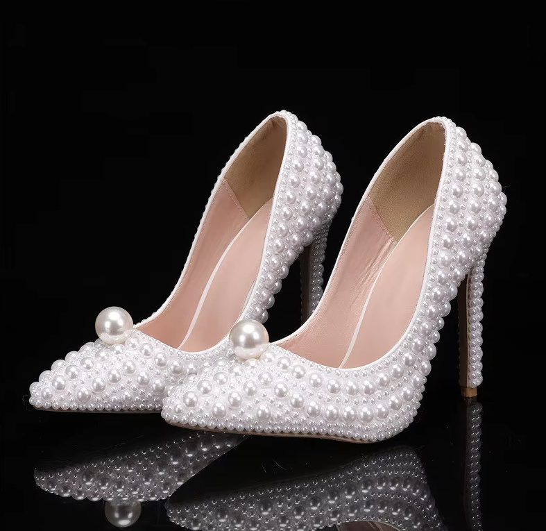 White Pearl Bridal Shoes Emmi High Heels