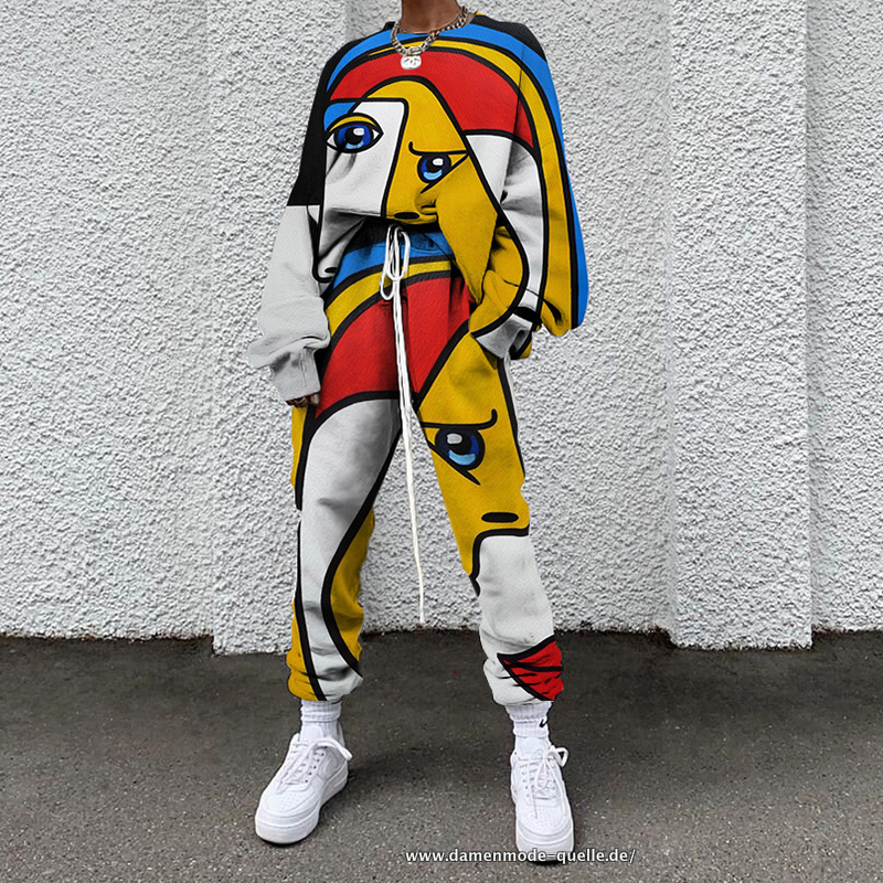 Damen Streetwear Trend Set Damen Rundhals Sportswear Gelbe Augen