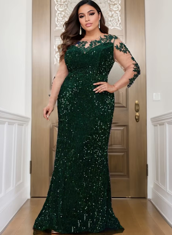 Fit and Flare Glitter Bridesmaid Dress Eltje Floor Length in Dark Green