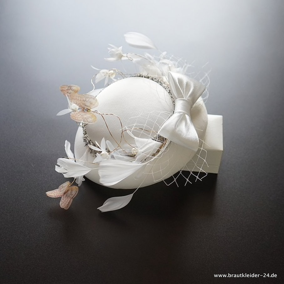 Brauthut Nola mit Schleife und Blumen in Weiß