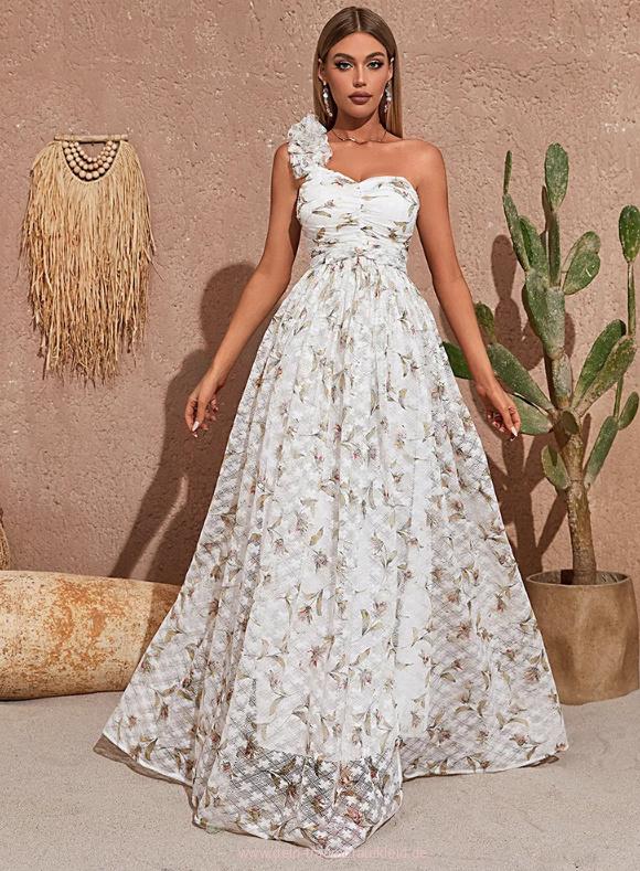 One Shoulder Chiffon Kleid in Weiß für Hochzeitsgäste Meriem Lang mit Applikationen