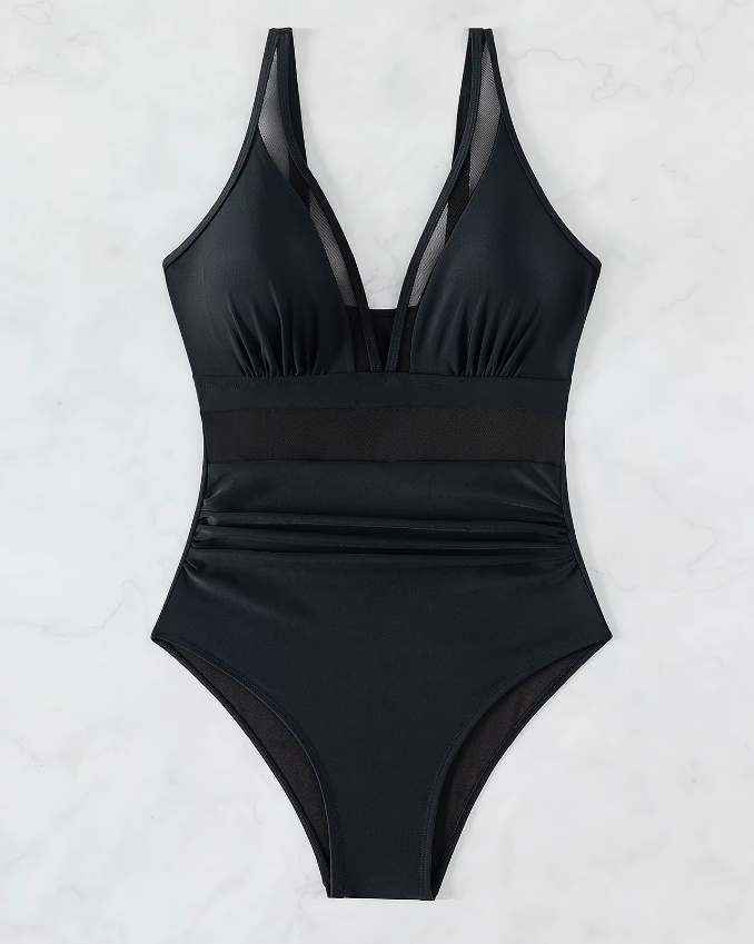 Sexy Mesh Patchwork Swimsuit Monokini Wendelina in Black