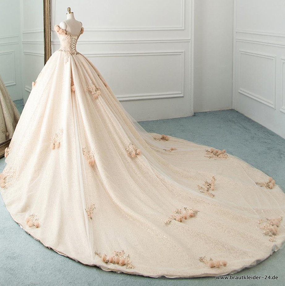 Schulterfreies Brautkleid Nikolina mit Schleppe und 3D Blumen
