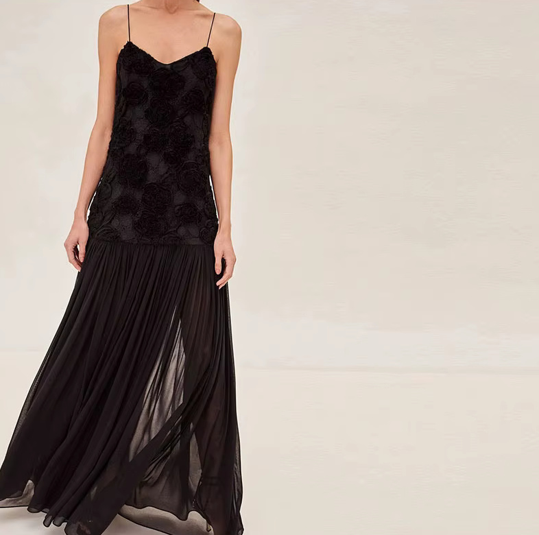 Retro Style Maxi Summer Dress Elegant with Straps and Flowers in Black