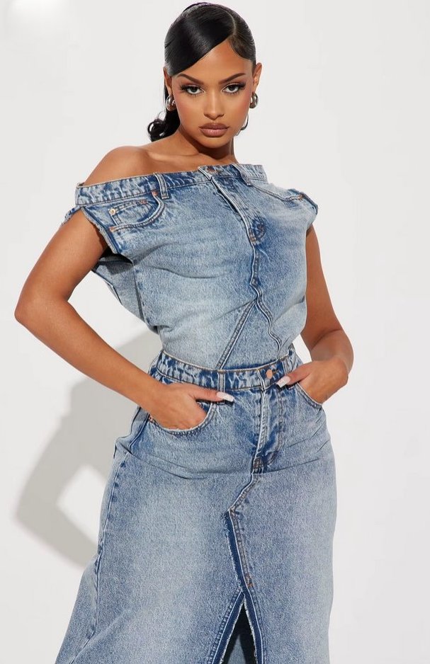 Off Shoulder Jeans Summer Outfit for Women Skirt with Shirt in Set