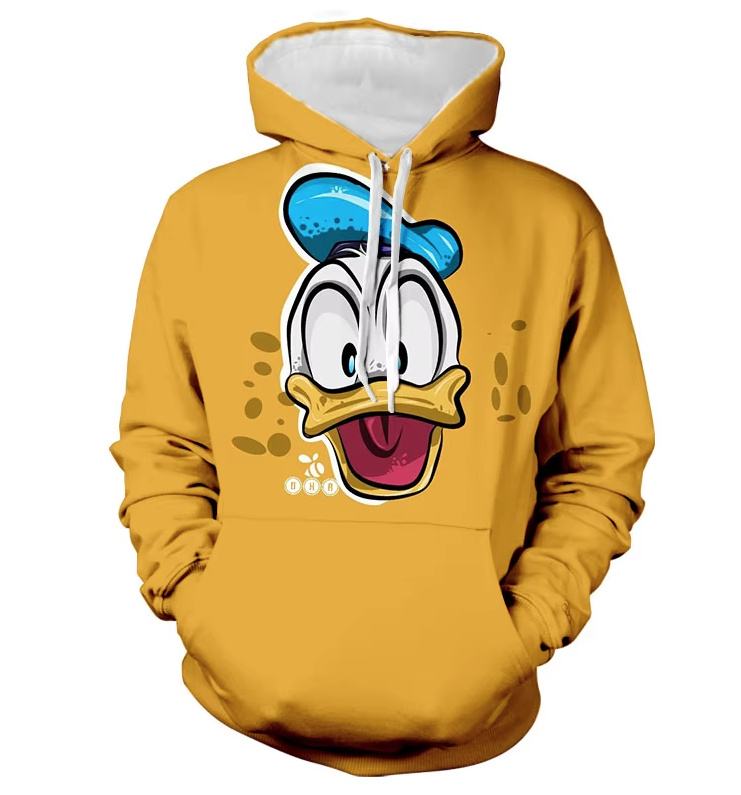 Unisex Cartoon Disney Donald Duck Hoodie in Yellow