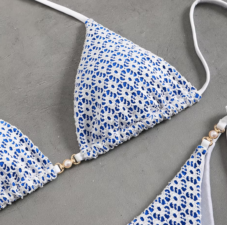 Halterneck Bikini Wisgard with High Waist and Pearls Blue