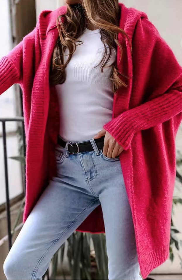 Women’s Cardigan Doro with Hood and Batwing Sleeves in Red