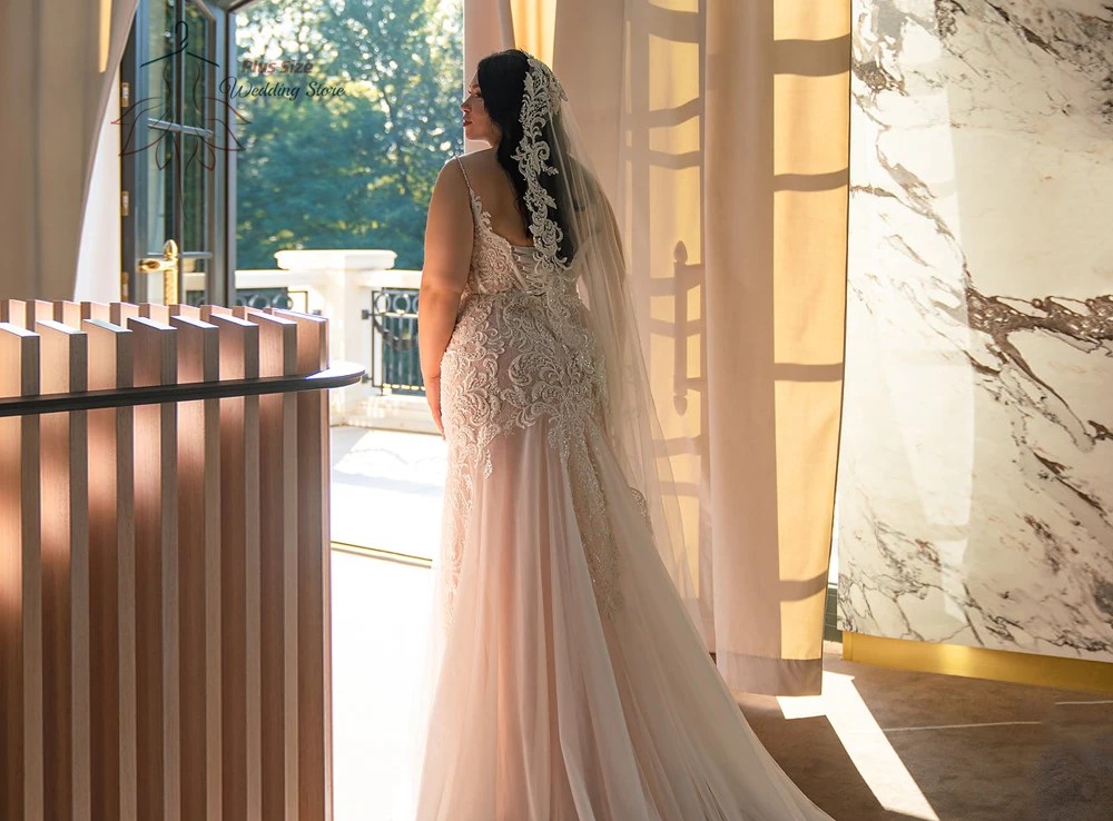 Sexy mermaid wedding dress in plus size with spaghetti straps