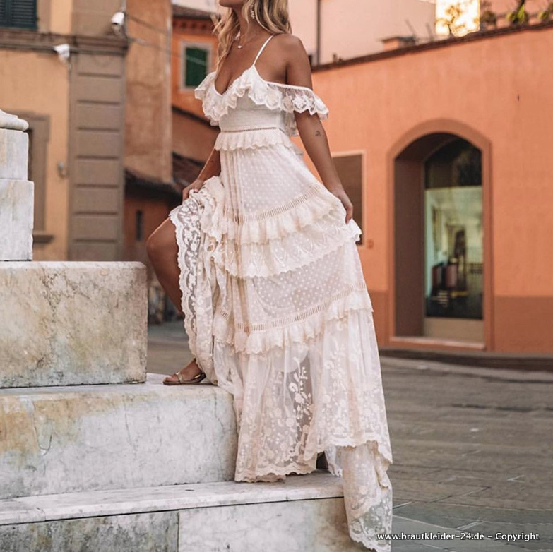 A Linie Boho Spaghettiträger Kleid für die Braut Lang Standesamtmode