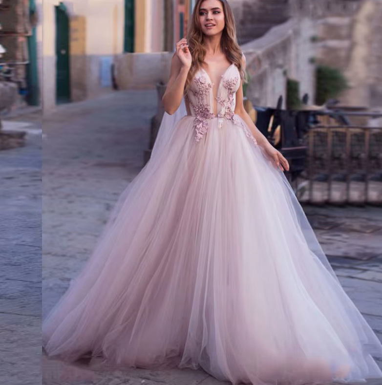 Robe De Mariage A Line Tulle Wedding Dress Ester with Flowers