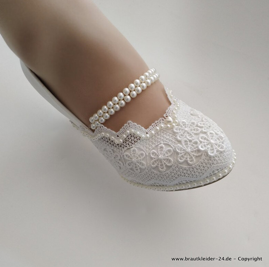 Brautschuhe Osma in Weiss mit Perlen Spitze