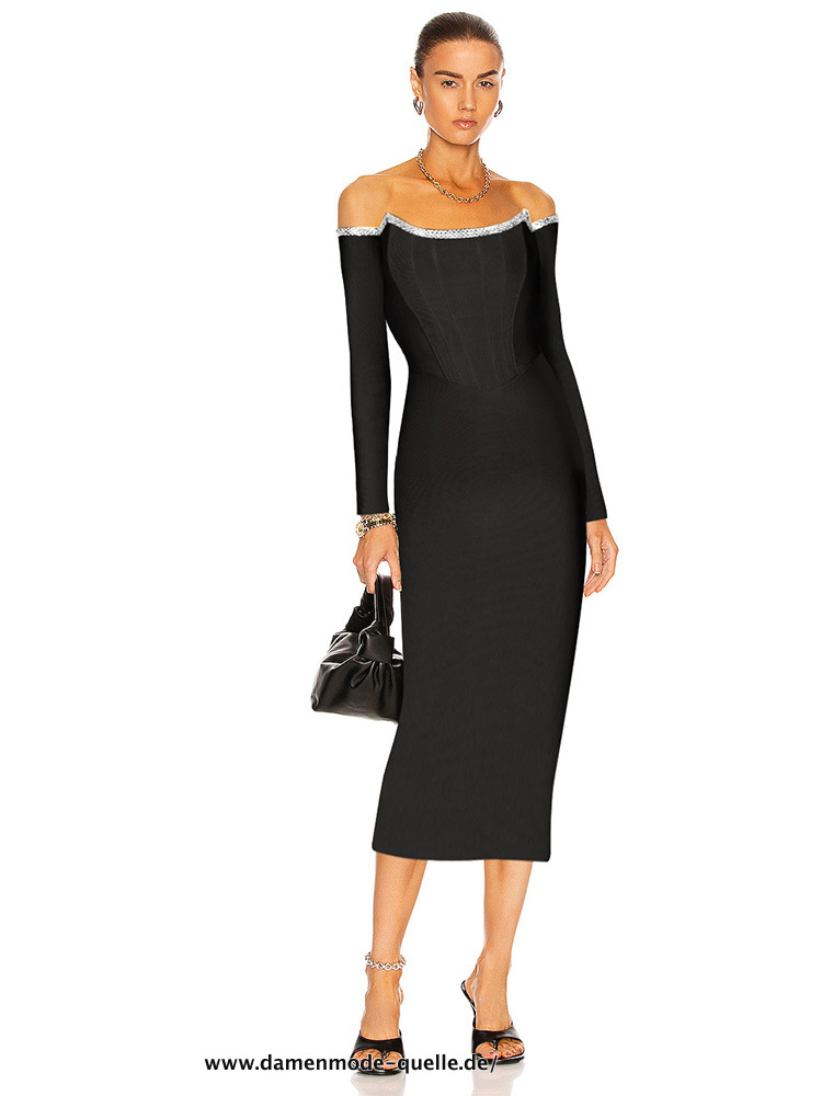 Midi Kleid Damen Langarm Bodycon Sexy Partykleid