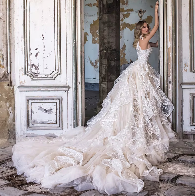 Romantic A-line wedding dress Francine with halter straps and lace
