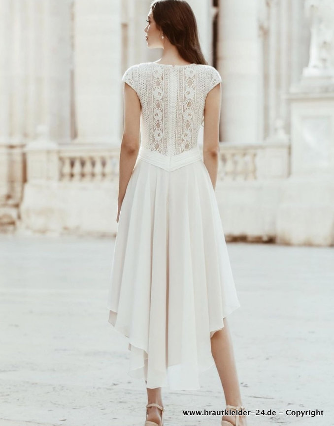 Kurzarm Brautkleid Palila Vorne Kurz Hinten Lang