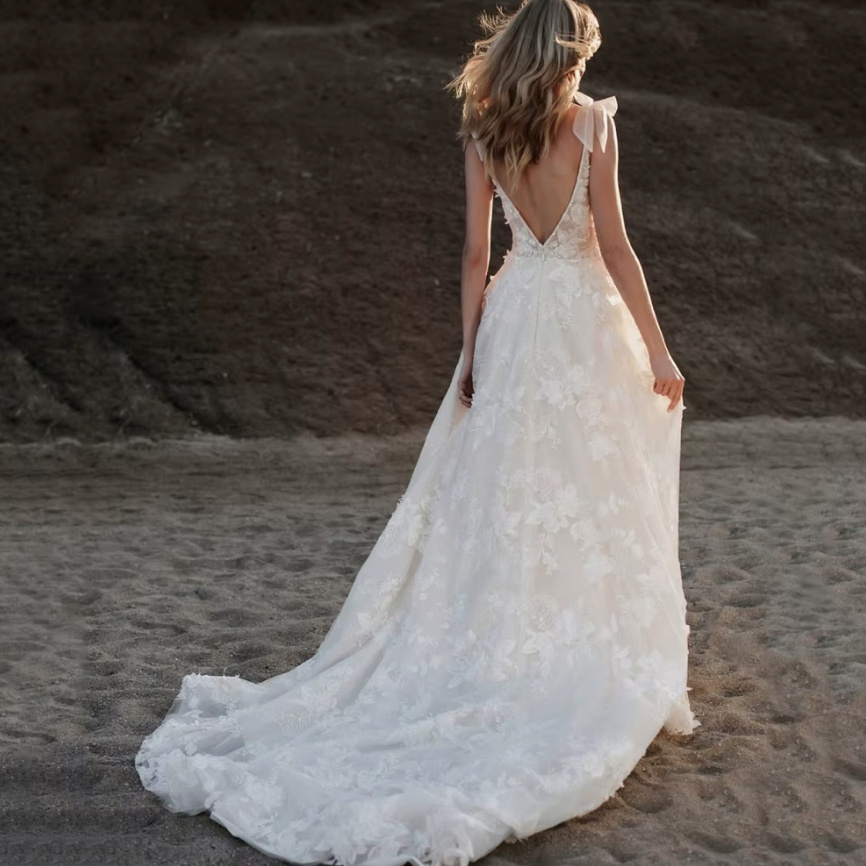 A Line Wedding Dress Clara Sleeveless Backless with Lace