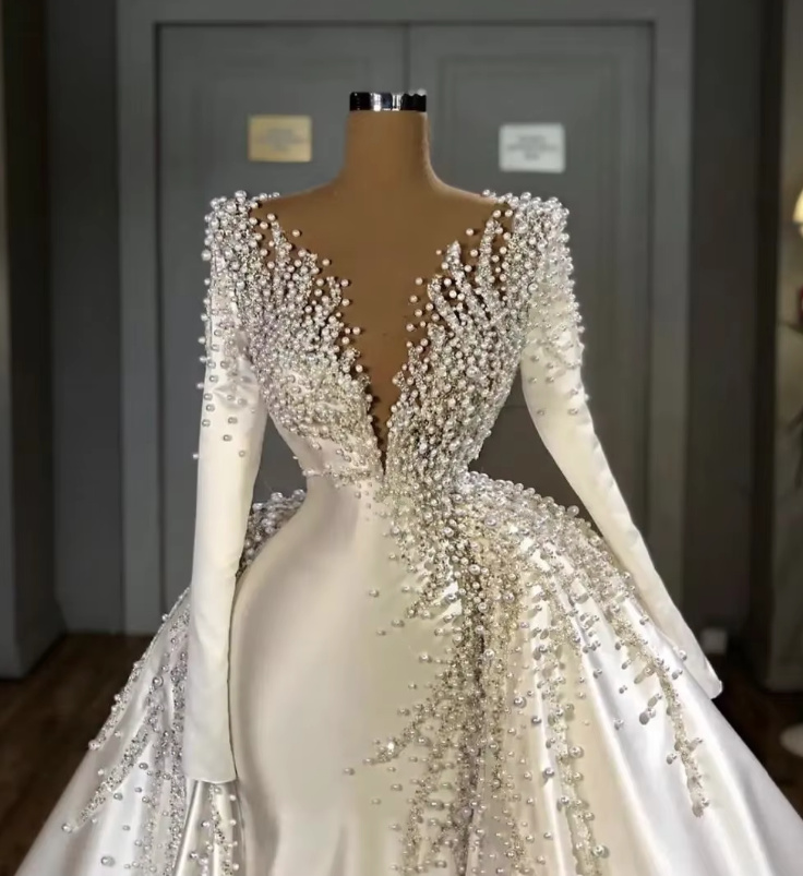 Elegant long sleeve I line wedding dress Ester with rhinestones and pearl embroidery