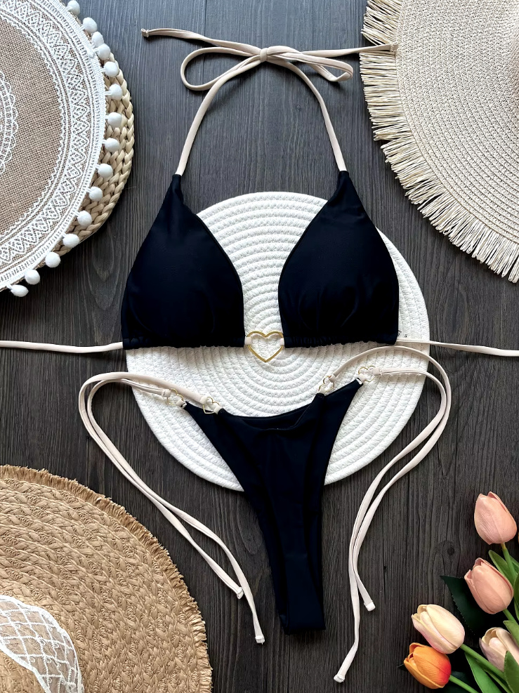 Halterneck Tanga Bikini Weerta with Hearts in Black