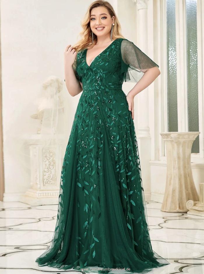 A Line Dress Elegant for Wedding Guests Lily in Green with V Neck Sleeves and Sequin Embroidery