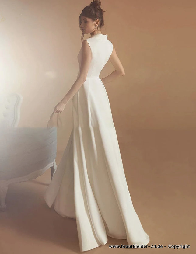 A Linie Wickel Kleid für die Braut Lang mit V Ausschnitt Standesamtmode