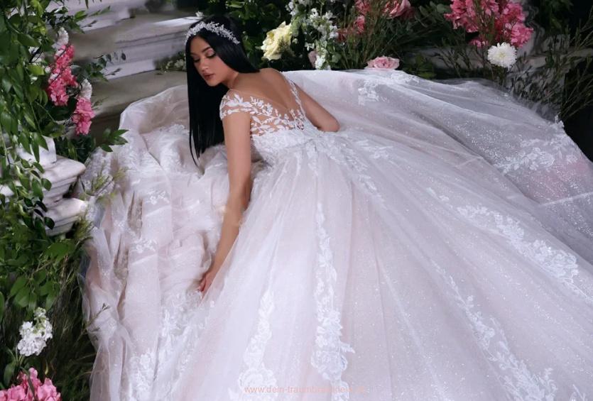 Ball Linie Prinzessinnen Glitzer Brautkleid Lucie mit Spitze und Rückenausschnitt