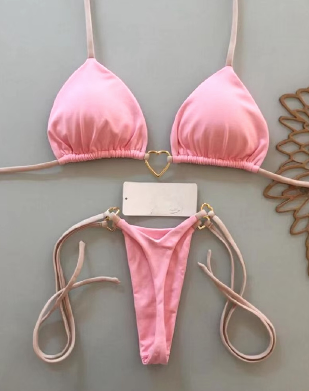 Halterneck Tanga Bikini Weerta with Hearts in Pink