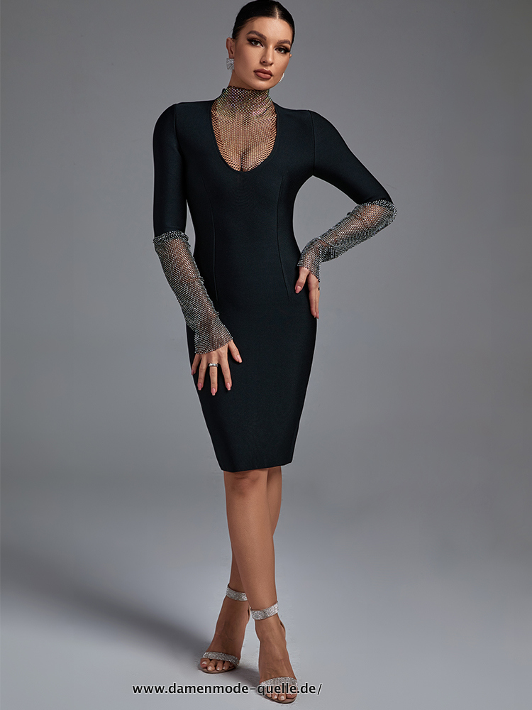 Langarm Kleid Schwarz Bodycon Elegant Sexy