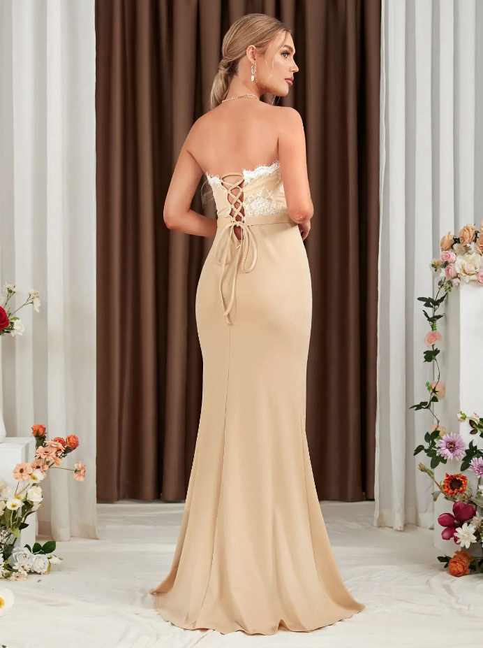 Schulterfreies Meerjungfrau Kleid Elegant in Champagne mit Spitze