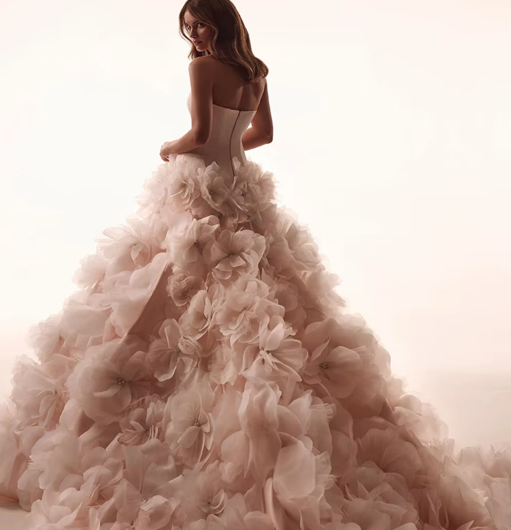 Off-the-shoulder wedding dress Franziska with floral pearl appliqués and train