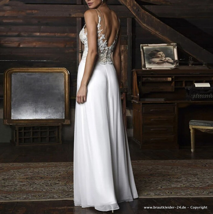 A Linie Braut Overall Jumpsuit Einteiler Lang mit Blumenspitze