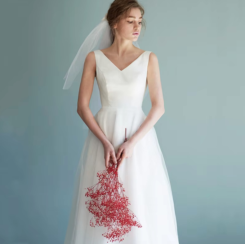 A Line Civil Wedding Dress Cécile Simple Calf Length