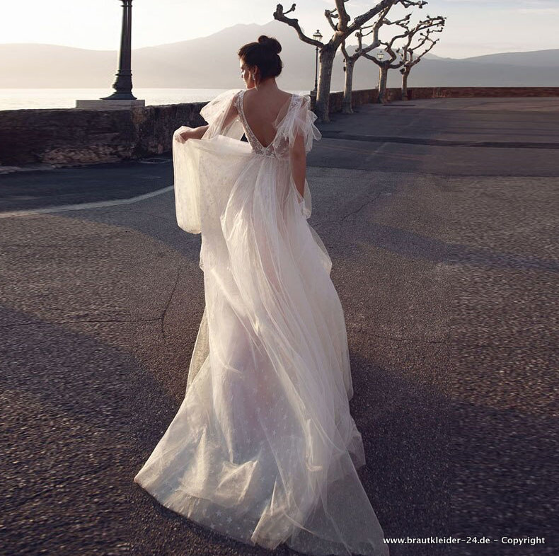 Romantisches Tüll Brautkleid Remy mit V Ausschnitt
