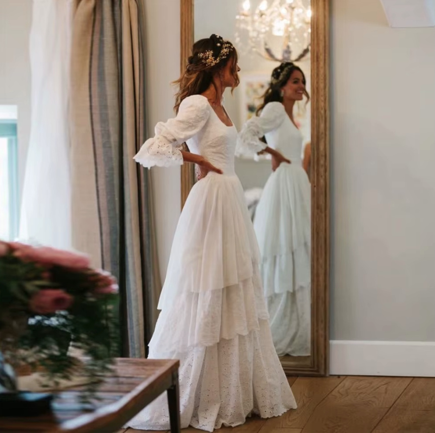 A Line Long Sleeve Vintage Wedding Dress Frantje with Ruffles and Train