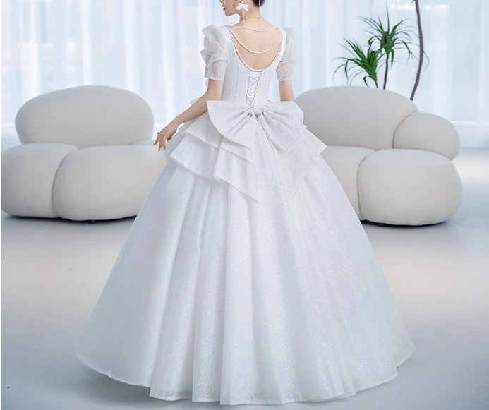 Ball Gown Short Sleeve Wedding Dress with Sequin Beaded Appliques