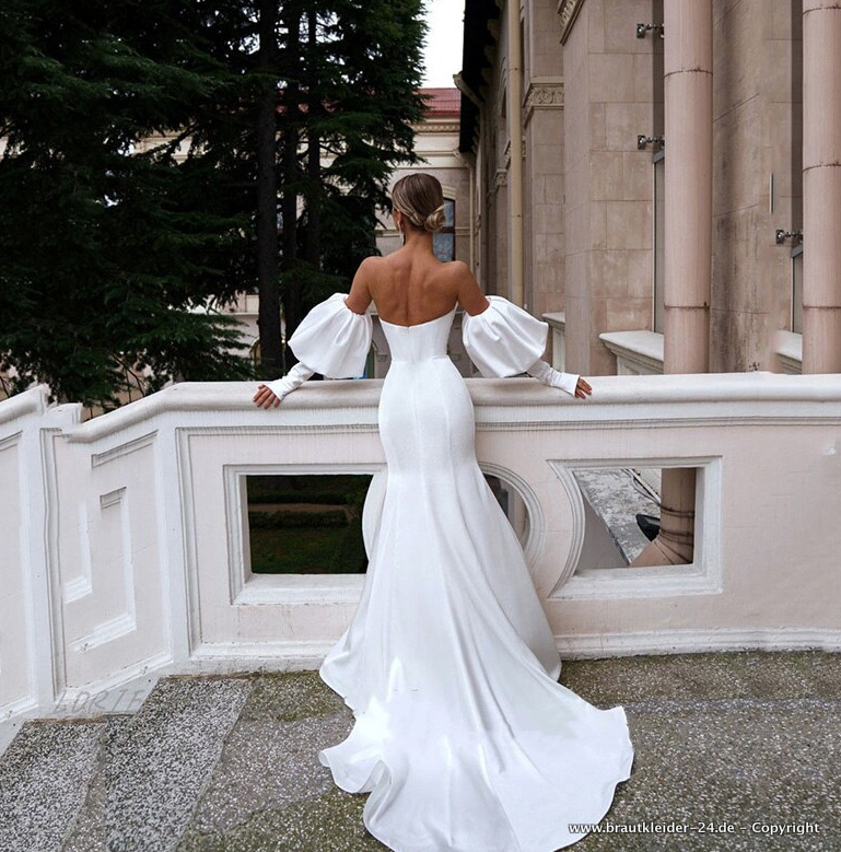 Satin Meerjungfrau Brautkleid mit Puffärmel und Pinselschleppe