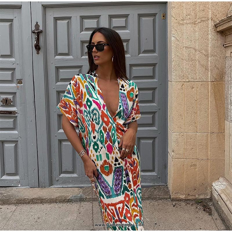 Blumenmuster V Ausschnitt Midi Kleid Italienische Elegance