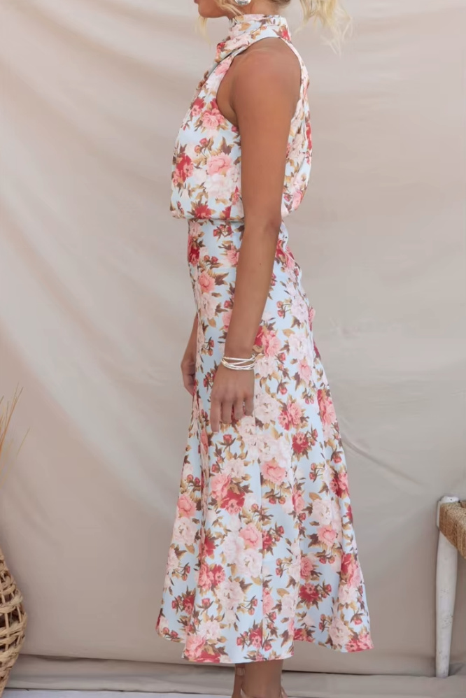 Elegant summer dress Cydnee for wedding guests ankle length with floral pattern