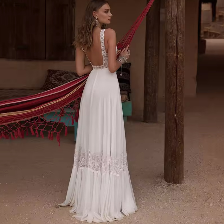 A Line Boho Wedding Dress Frauke with Straps Backless