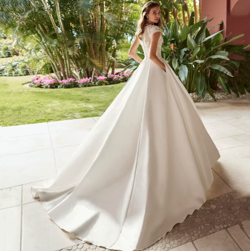 A Linie Brautkleid Caroline mit Flügelärmeln Spitze und Schleppe