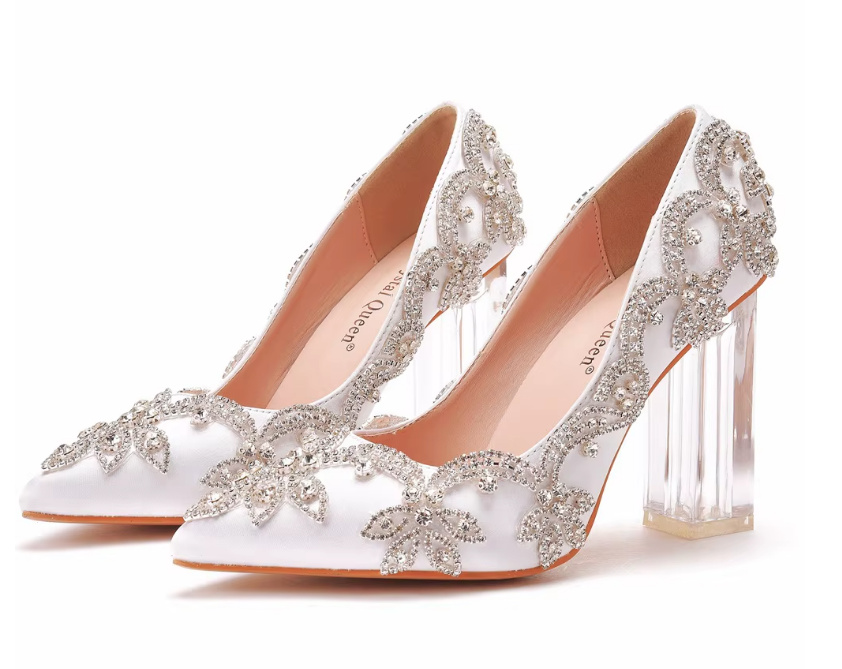 Clear Heels Crystal Pump Feelija Bridal Shoes with Block Heel