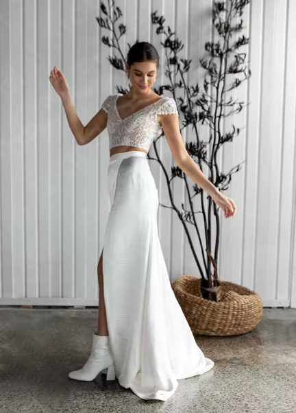 Two-piece wedding dress Florina with boho lace and cap sleeves