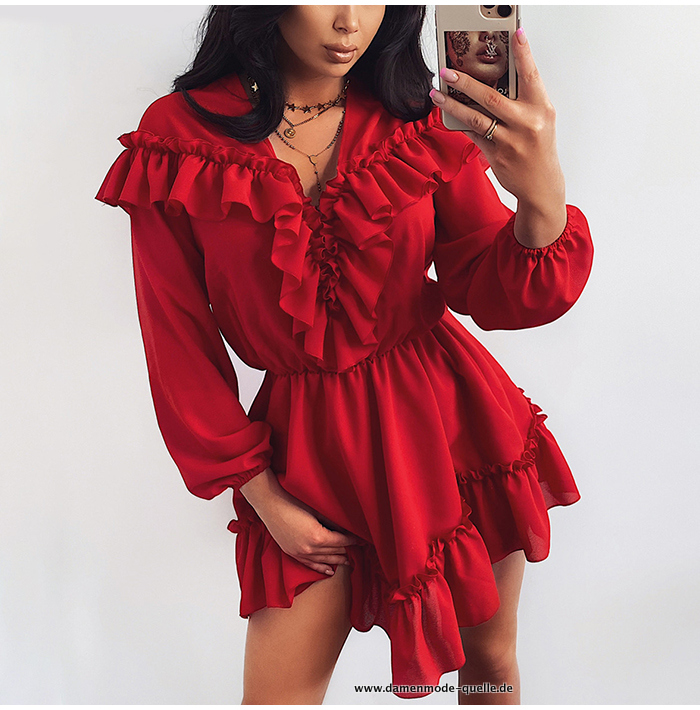 Rotes Sexy V-Ausschnitt Mini Party Kleid