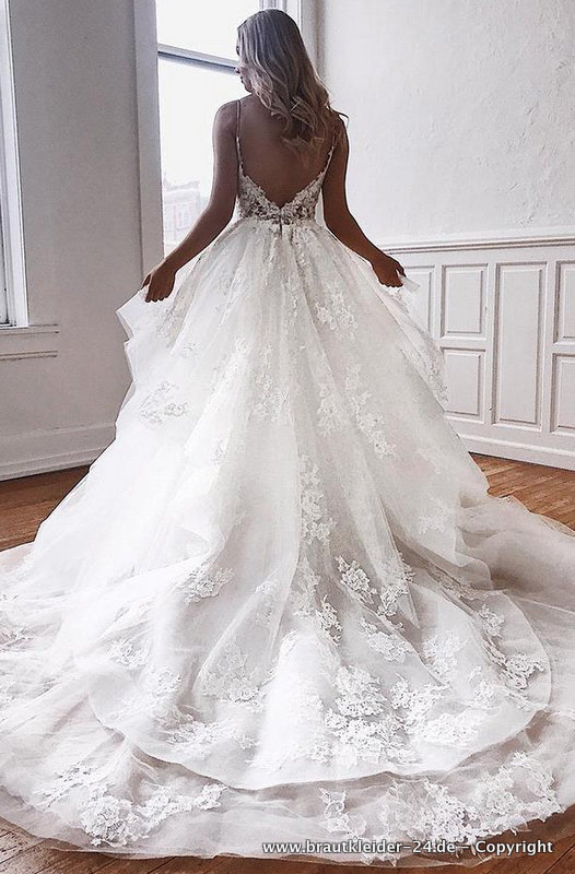 Ball Linie Brautkleid Michaela mit Schleppe und Spitzen Applikationen