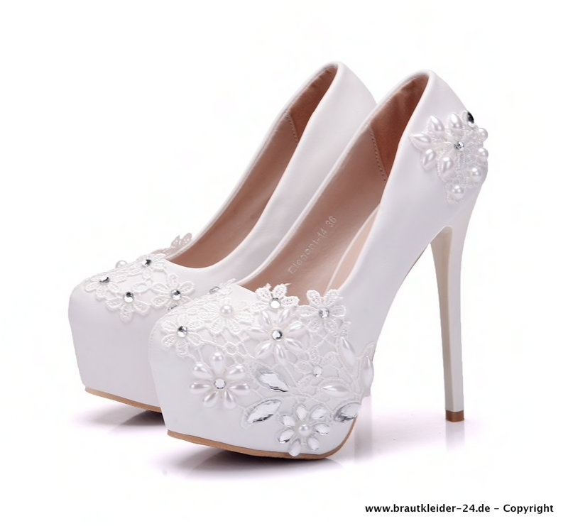 Königin High Heels Brautschuhe Abendschuhe mit Blumen in Weiß