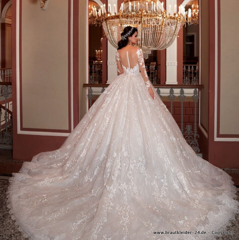 Langarm Ball Linie Brautkleid Martine Hochzeitskleid mit Schlitze und Schleppe