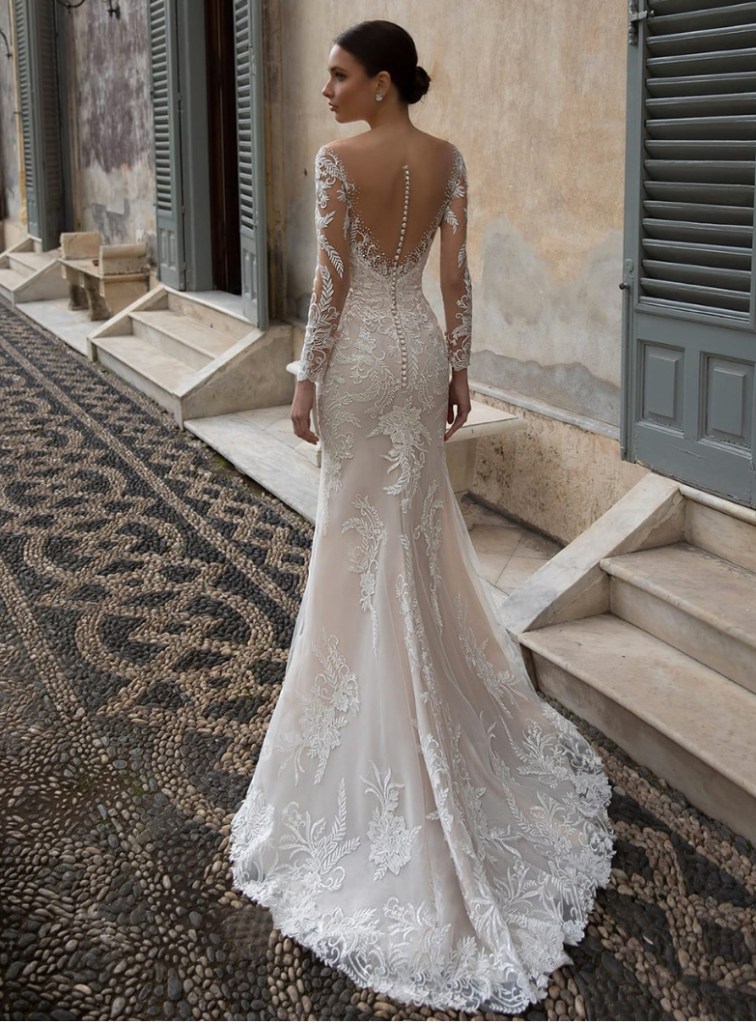 Fit and Flare Wedding Dress Cornelia with Illusion Sleeves and Train