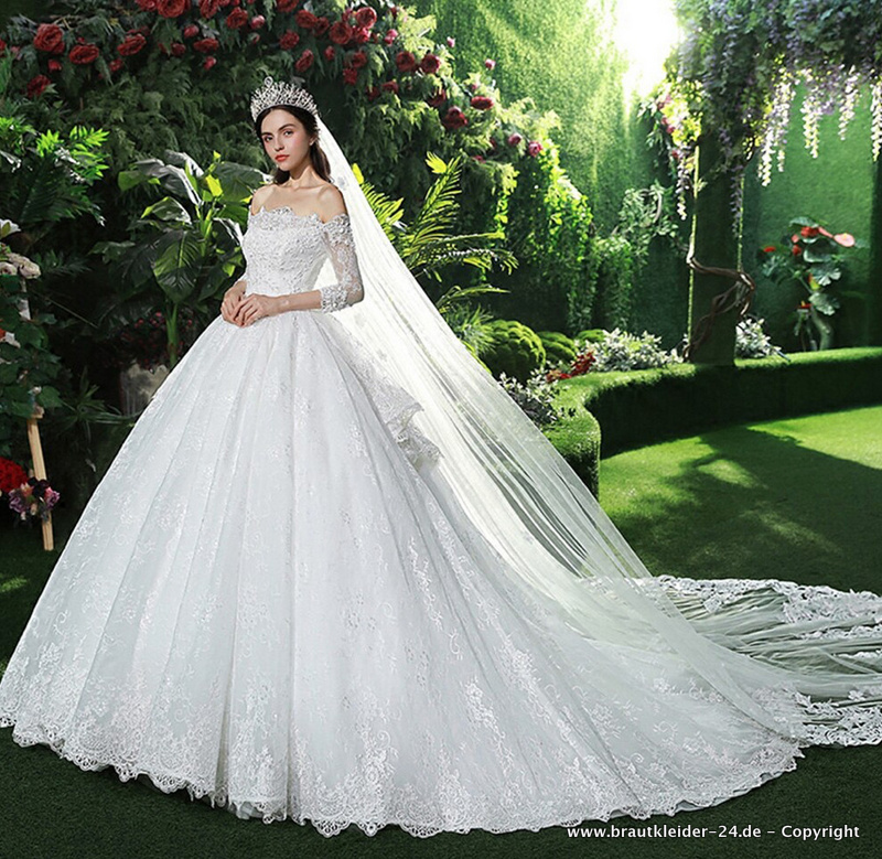 Prinzessin Brautkleid Schulterfrei mit Schleppe und Schleier