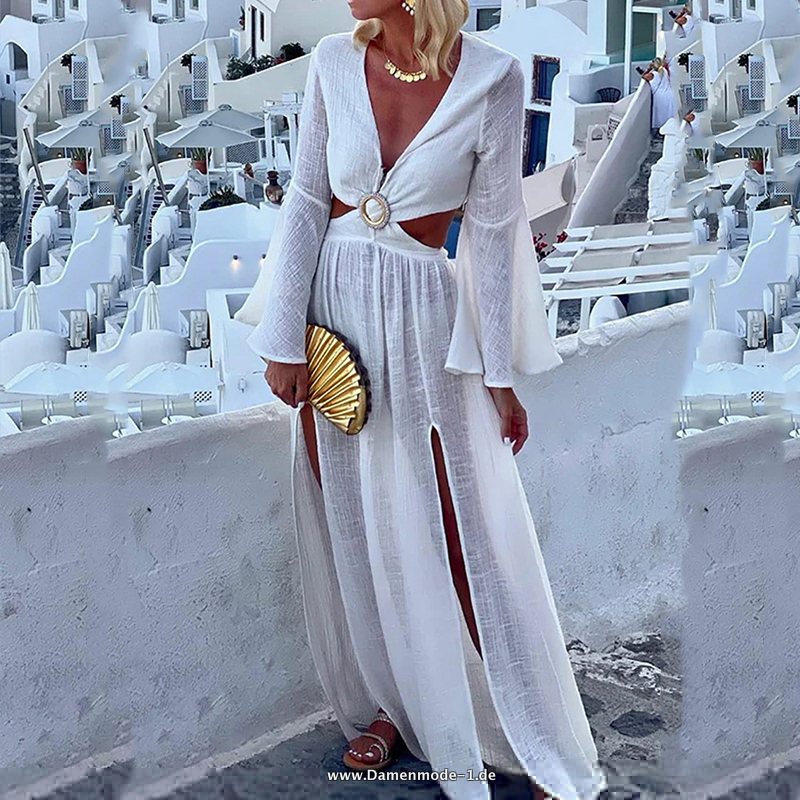 V-Ausschnitt Plissee Kleid Sexy Sommer Outfit