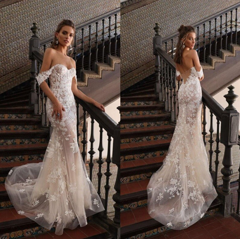Fit and Flare Wedding Dress Charleen Off Shoulder with Lace and Train