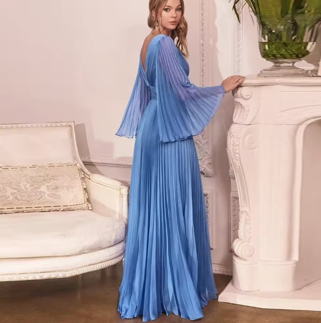 A Line Chiffon Dress Pleated Elegant for Wedding Guests in Light Blue